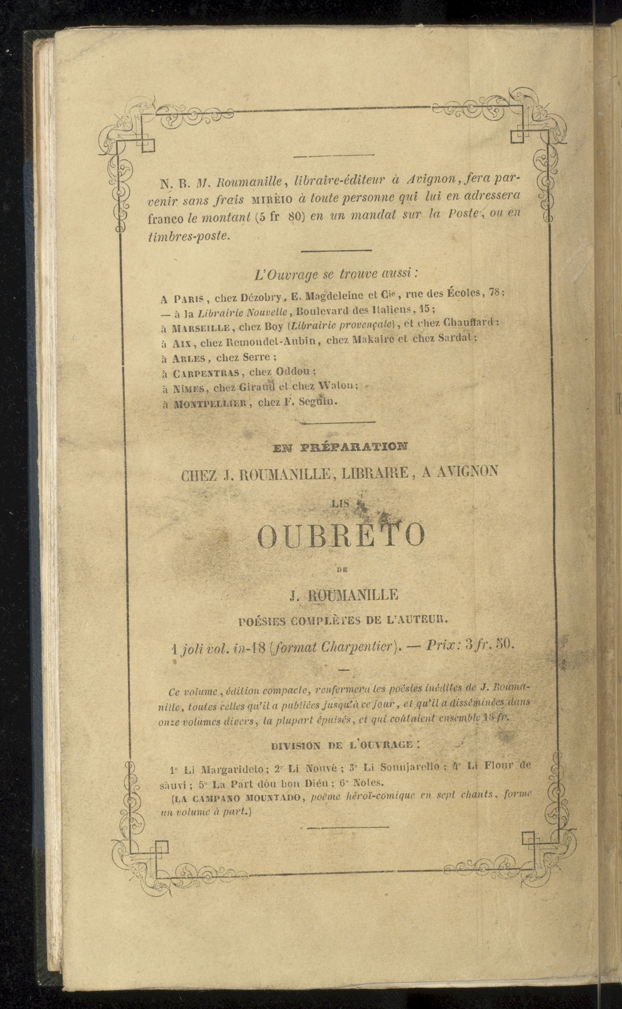 Divers feuillets autographes (certains signés) joints à l'édition originale de Mirèio, pouèmo prouvençau, J. Roumanille, Avignon, 1859.