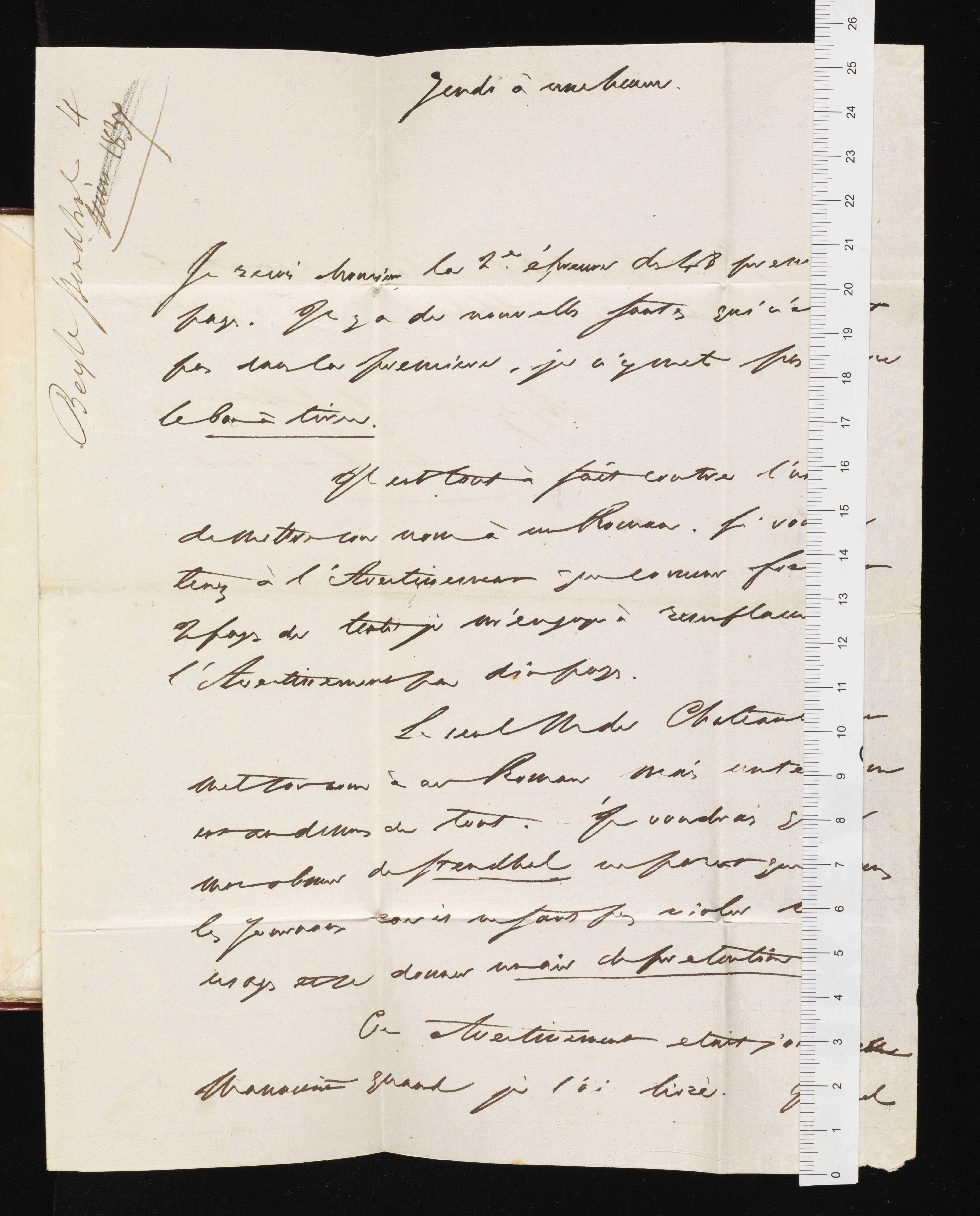 Lettre autographe à Urbain Canel, son éditeur.