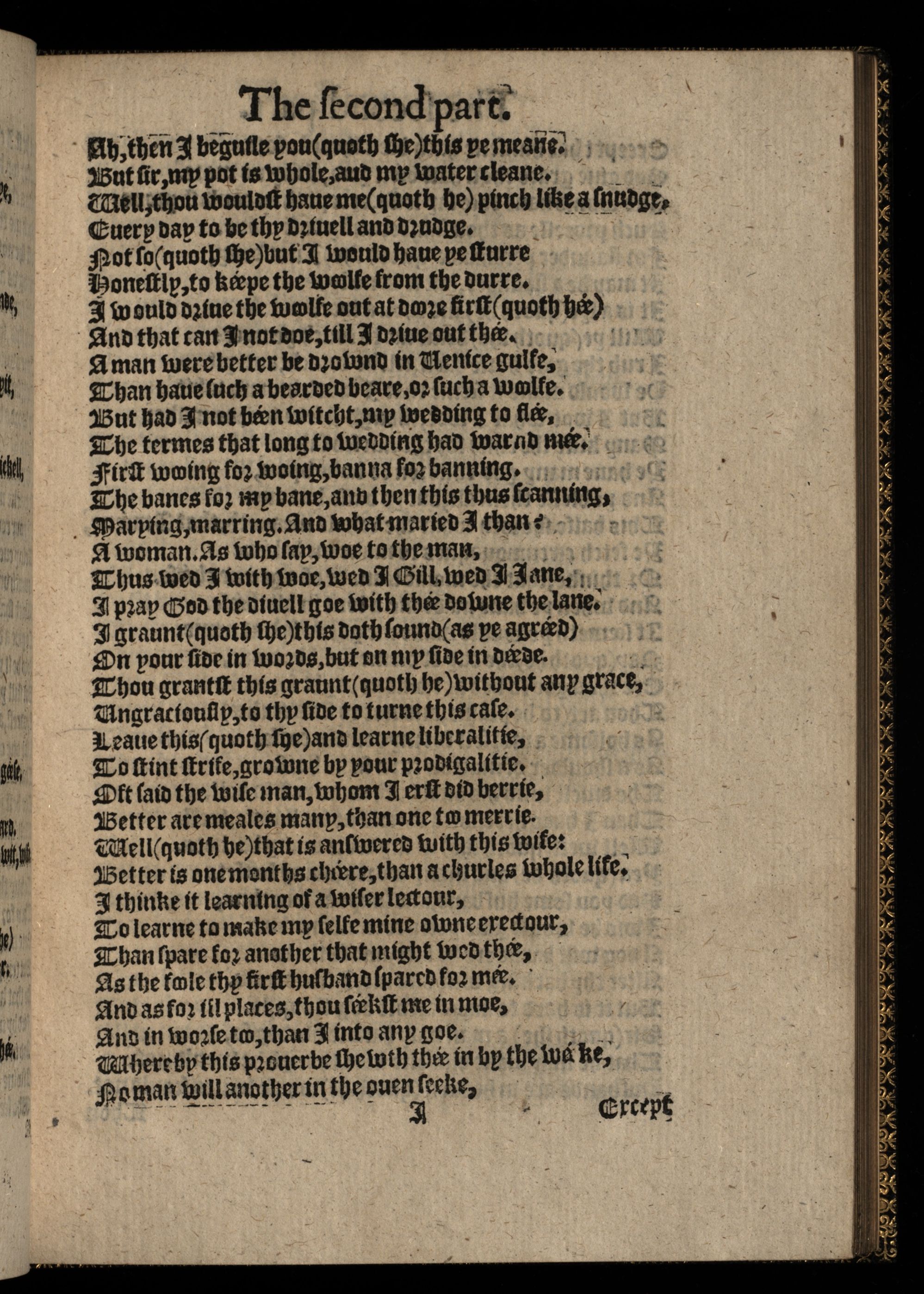 The Workes of Iohn Heiwood Newlie Imprinted. Namelie, A Dialogue, wherein are pleasantlie contriued the number of all the effectuall Prouerbs in our English tongue: Compact in a matter concerning two maner of Mariages. Together with three hundred Epigrammes vpon three hundred Prouerbes. Also a fourth, fifth and sixth hundreth of other very pleasant, pithie and ingenious Epigrammes.