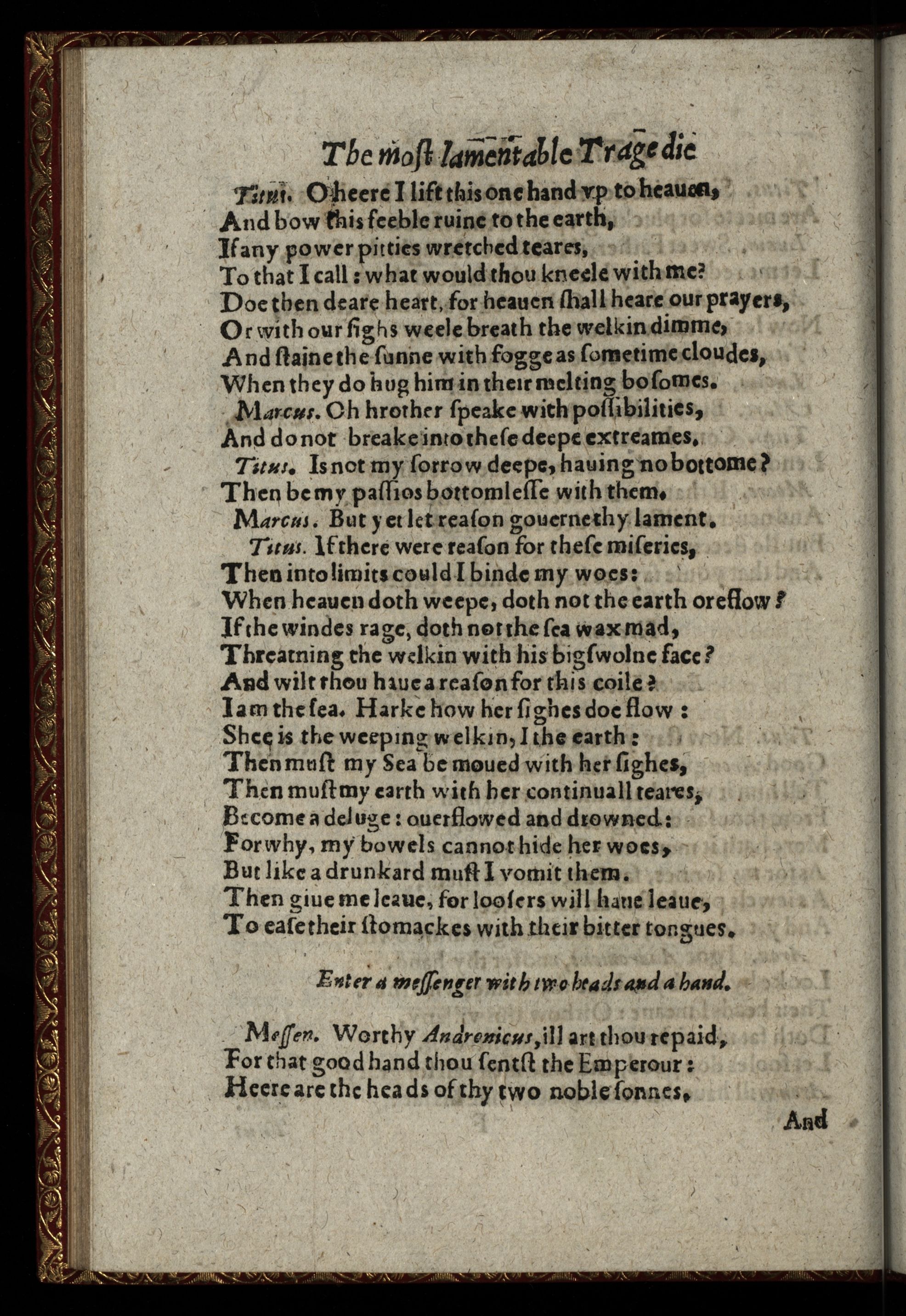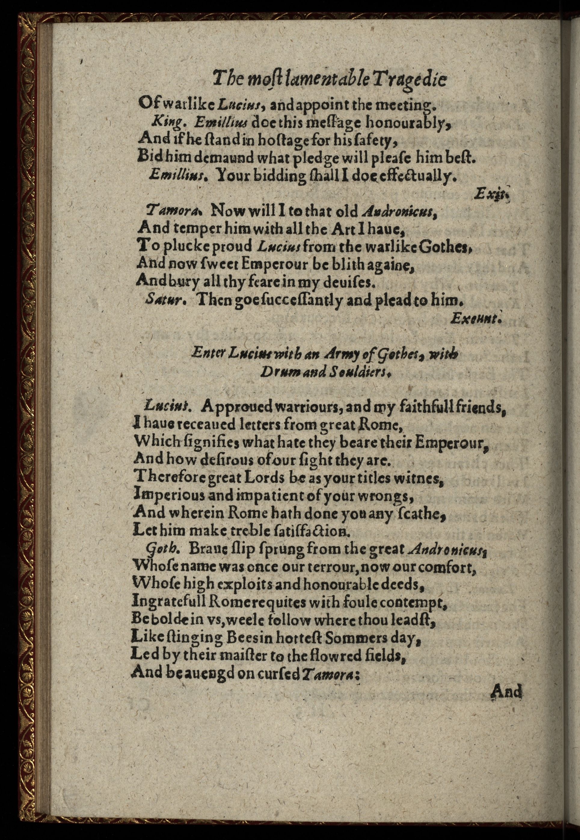 The Most Lamentable Tragedie of Titus Andronicus. As It Hath Sundry times beene plaide by the Kings Maiesties Seruants.