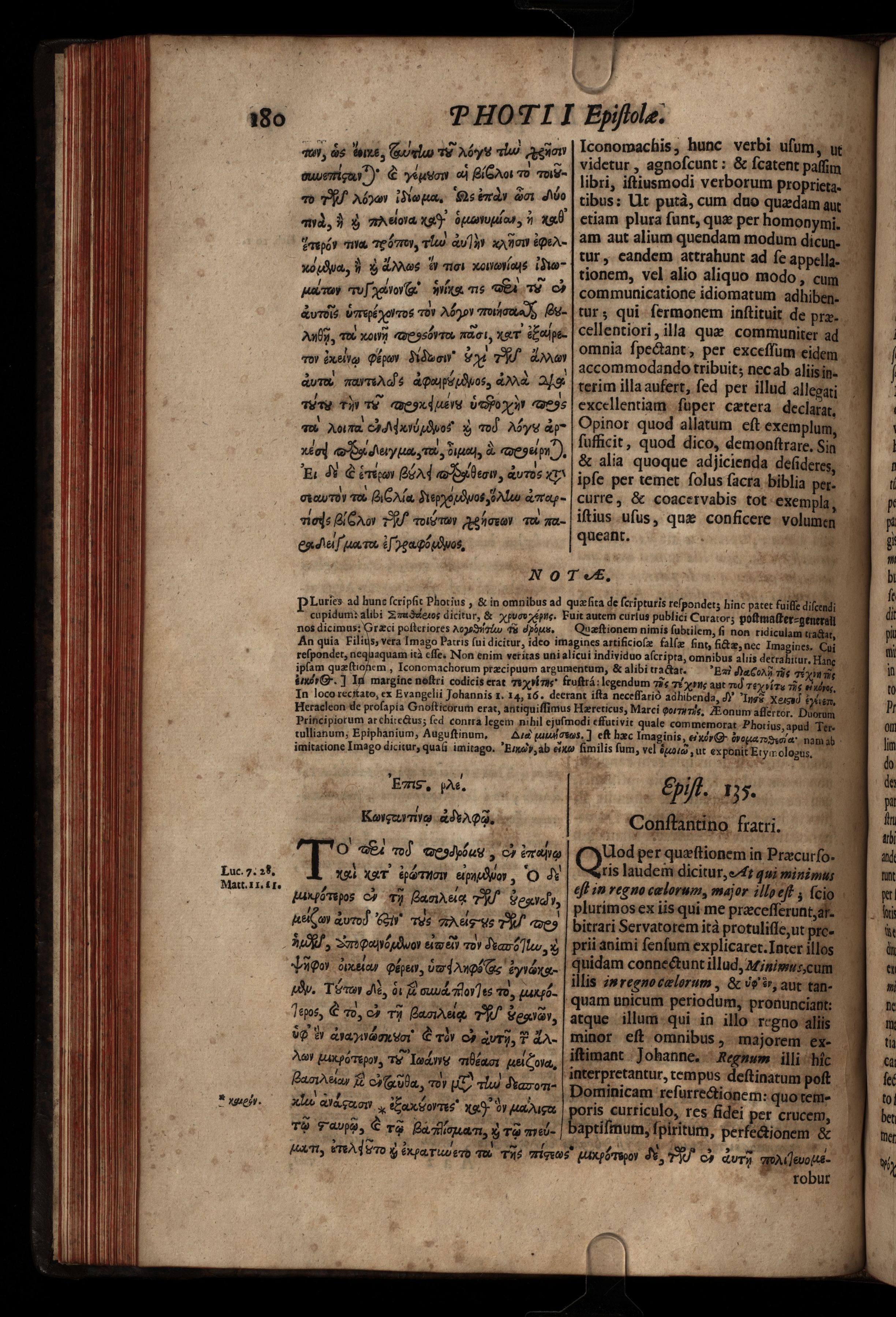 | Title: | Phōtiou, Patriarchou Kōnstantinou-poleōs Epistolai. Photii, Sanctissimi Patriarchæ Constantinopolitani Epistolæ. Per Reverendum Virum Richardum Montacutium Norvicensem nuper Episcopum, Latinè redditæ, & Notis subinde illustratæ. |
