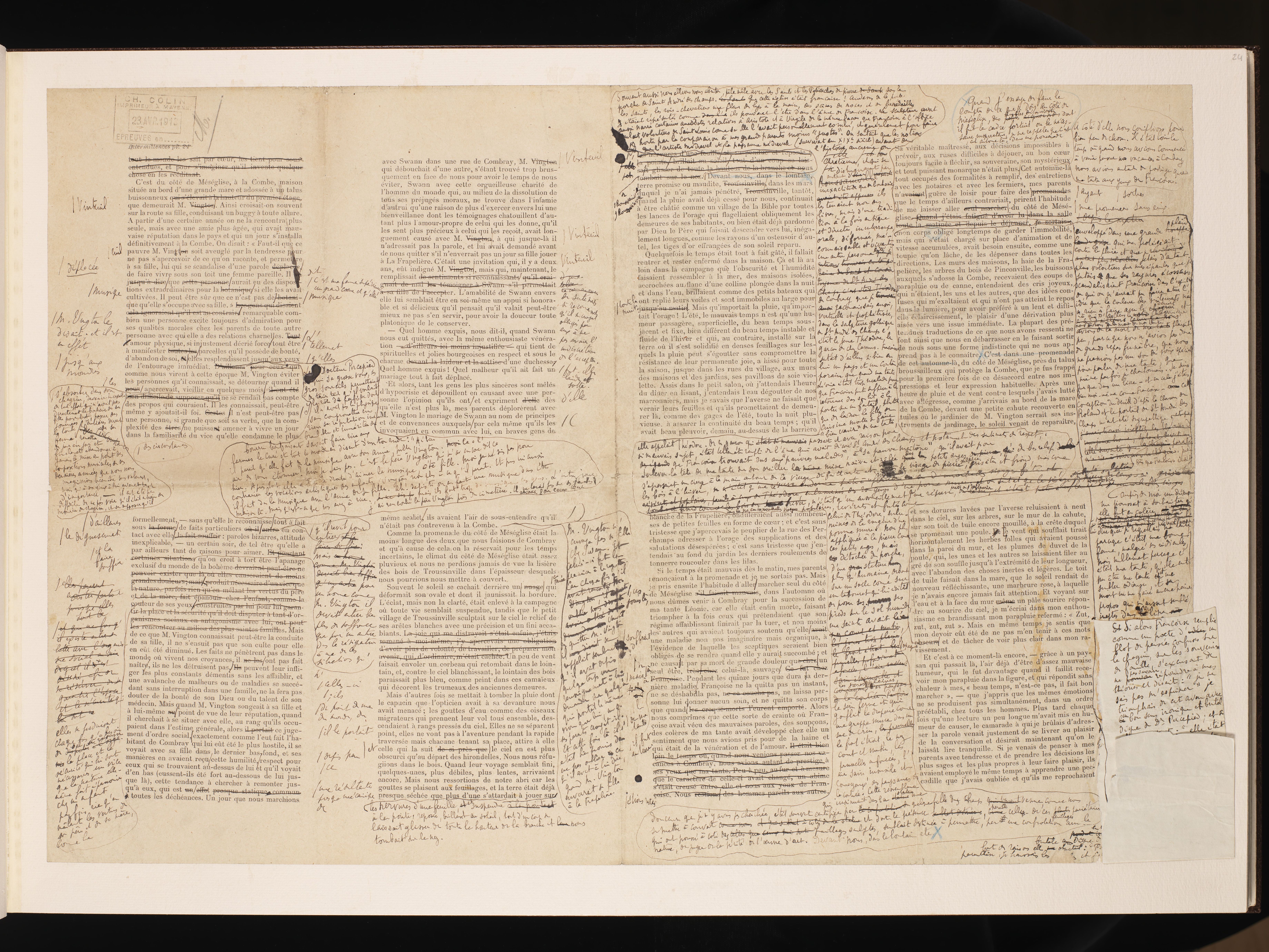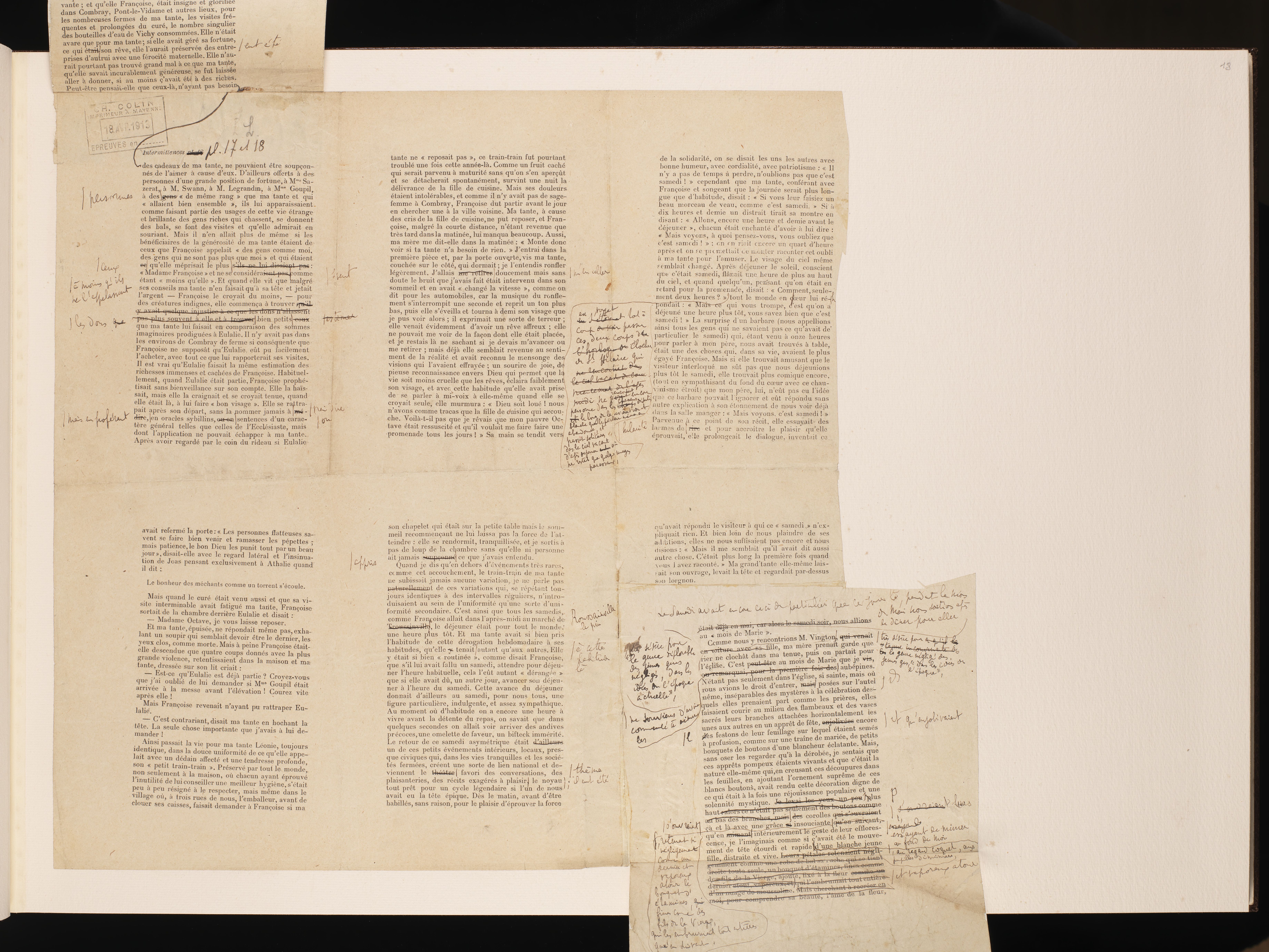 Corrections autographes des premières épreuves de Du côté de chez Swann - Combray.