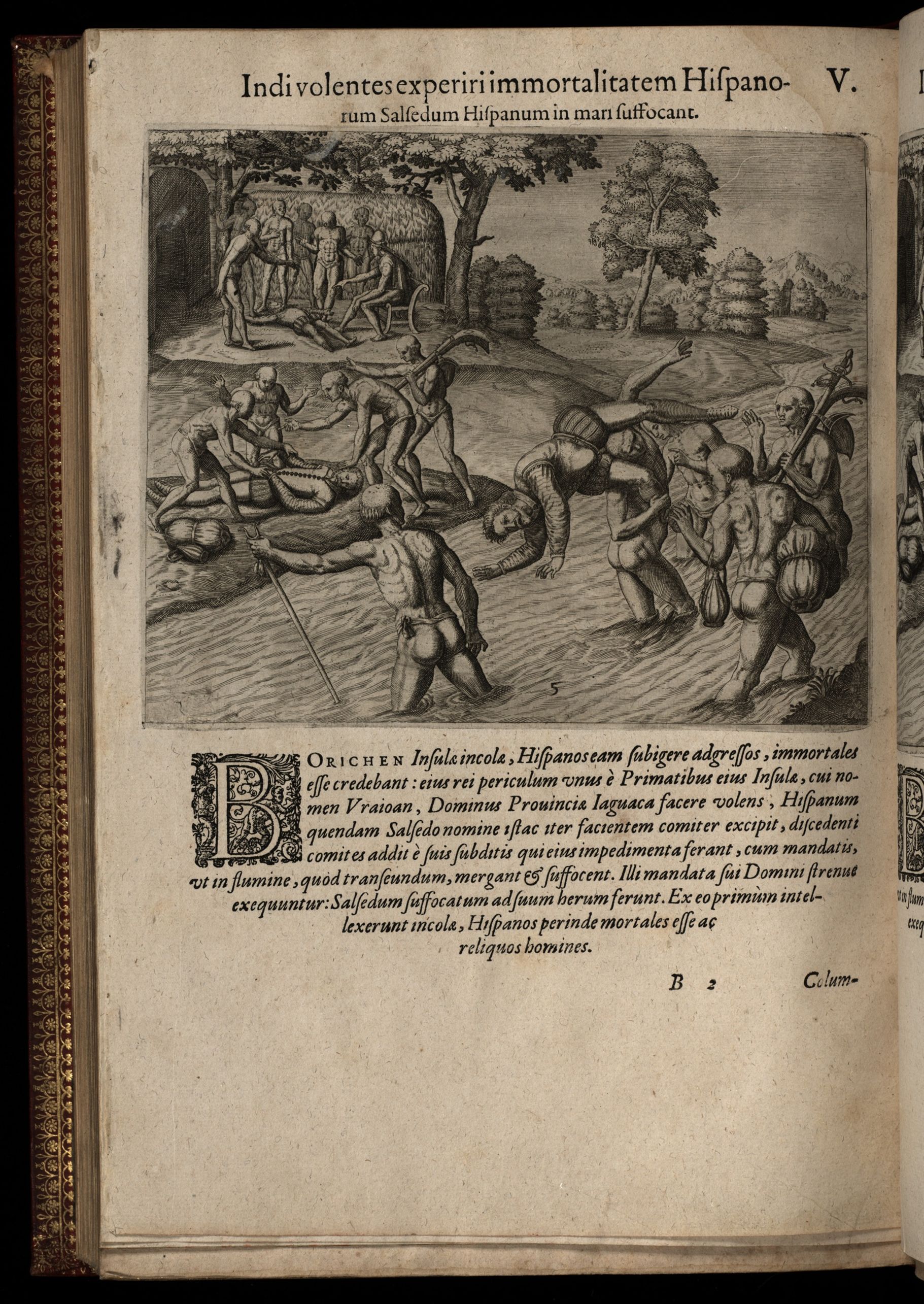 Americae pars quarta. Sive, insignis & admiranda historia de reperta primum Occidentali India à Christophoro Columbo anno M. CCCCXCII scripta ab Hieronymo Bezono Mediolanense, qui istic a[n]nis XIIII versatus dilige[n]ter omnia observavit. Addita ad singula fere capita, non contemnenda scholia in quibus agitur de earum etiam gentium idololatria. Accessit praeterea illarum regionum tabula chorographica. Omnia elegantibus figuris in aes incisis expressa.