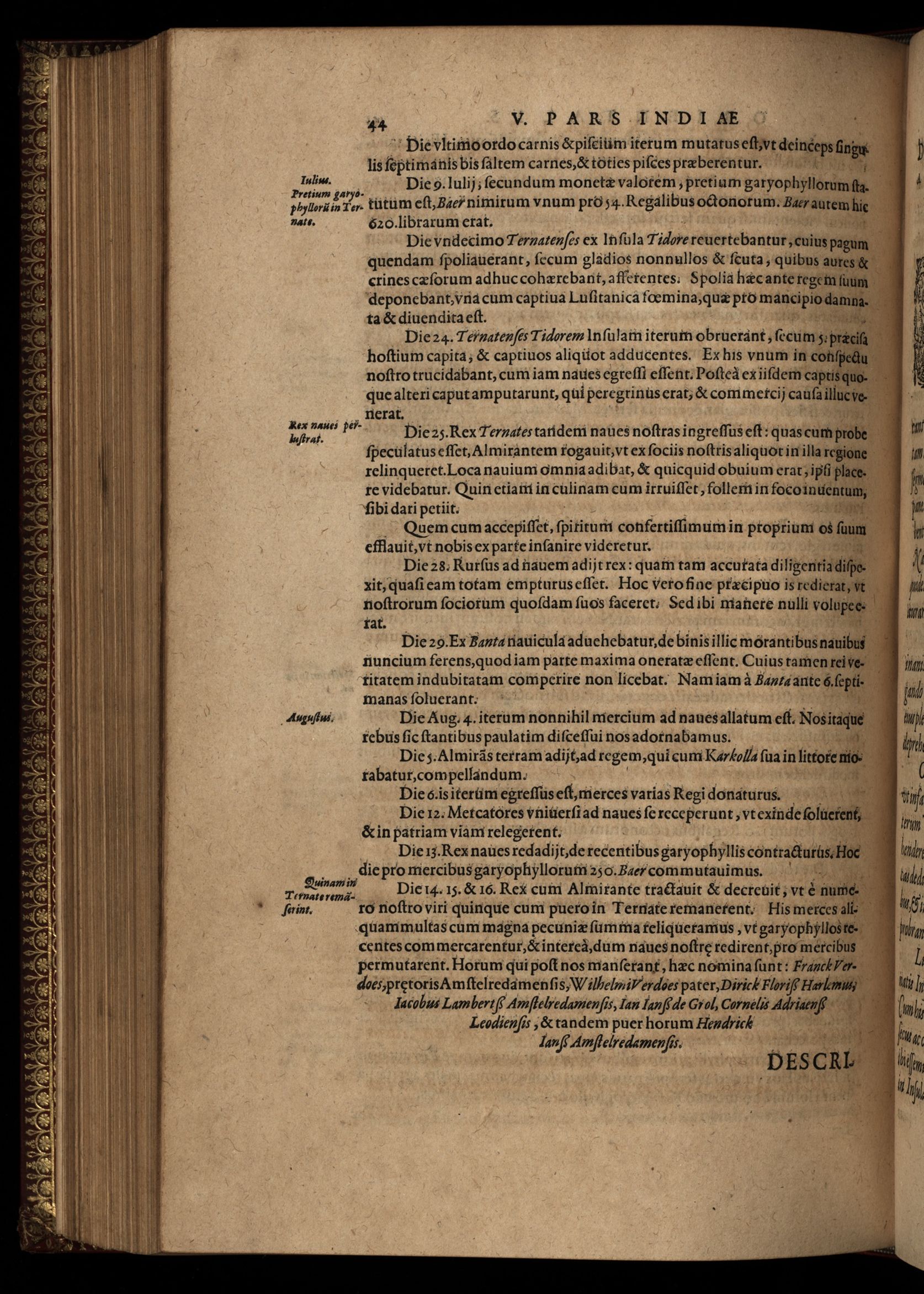 Quinta pars Indiae Orientalis : qua continentur vera & accurata descriptio uniuersa nauigationis illius, quam Hollandi cum octonis nauibus in terras Orientales, peracipuè verò in Iauanas & Moluccanas insulas, Bantam, Bandam & Ternatem & c. susceperunt : qui in An. 1598 Amstelredamo solventes, partim postero anno 1599, partim hunc sequente 1600 cum ingentibus divitiis, piperis, nucum myristicarum, Garyophyllorum, & caterorum pretiosorum aromatum, feliciter confecto itinere redierunt.