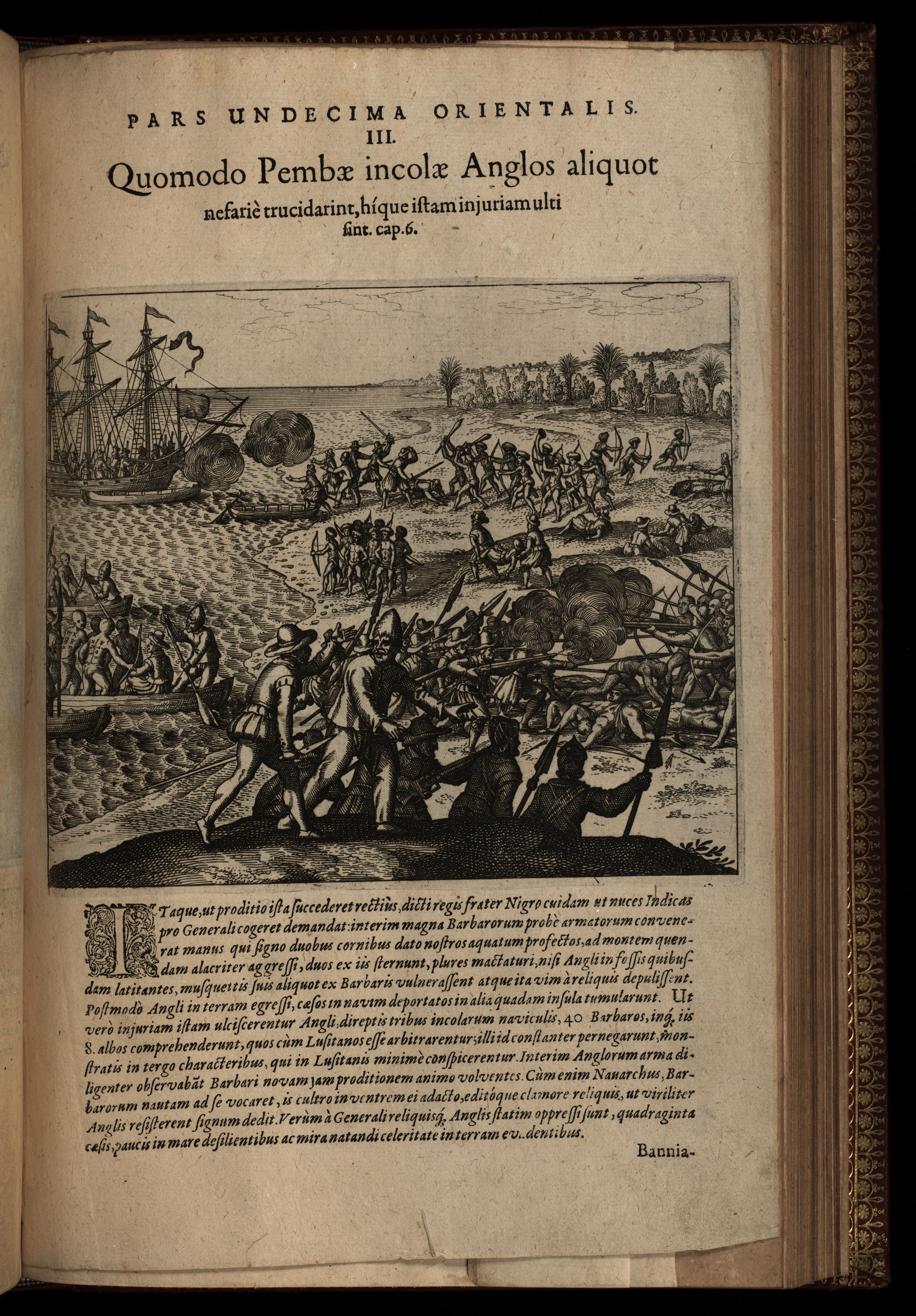 Sequuntur verae et genuinae rerum praecipuarum quarum in Americi Vesputii versus Indiam Orientalem navigationibus, ut & reliquis duabus in Cambajam & Spitzbergam expeditionibus fit mentio, repraesentationes, ad XI. Indiae Orientalis partem referendae additae sunt breves et unius cuiusque figurae descriptiones. Nunc primum eleganter in aes incisae & in lucem editae. Studio & operâ Johann-Theodori de Bry civis ac Bibliopole Oppenhemensis.