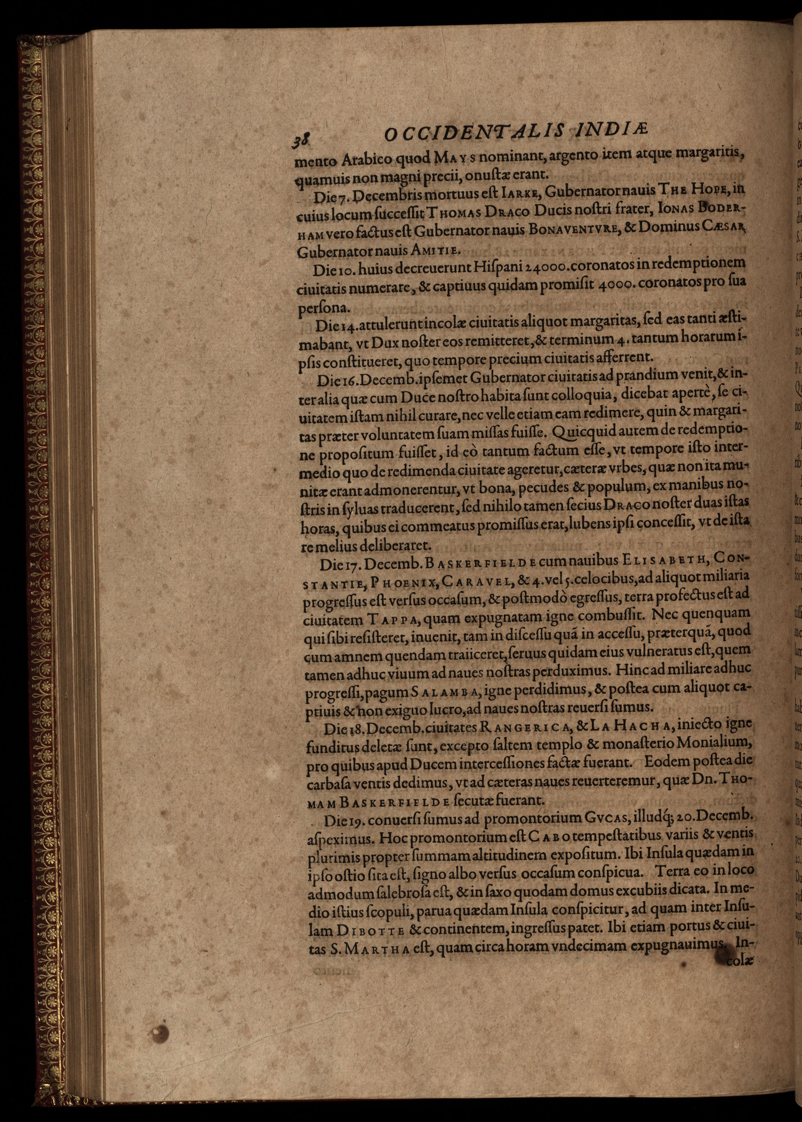 Americae pars VIII. Continens primo, Descriptionem trium itinerum nobilissimi et fortissimi equitis Francisci Draken, qui peragrato primum vniuerso terrarum orbe, postea cum nobilissimo equite Iohanne Hauckens, ad expugnandum ciuitatem Panama, in Indiam nauigauit, vbi vitam suam ambo finierunt. Secundo, iter noblissimi equitis Thomae Candisch, qui duorum ferè annorum spacio, 13000. Anglicana miliaria in mari confecit, vbi describuntur quoque omnia quae in hoc itinere ipsi acciderunt & visa sunt.