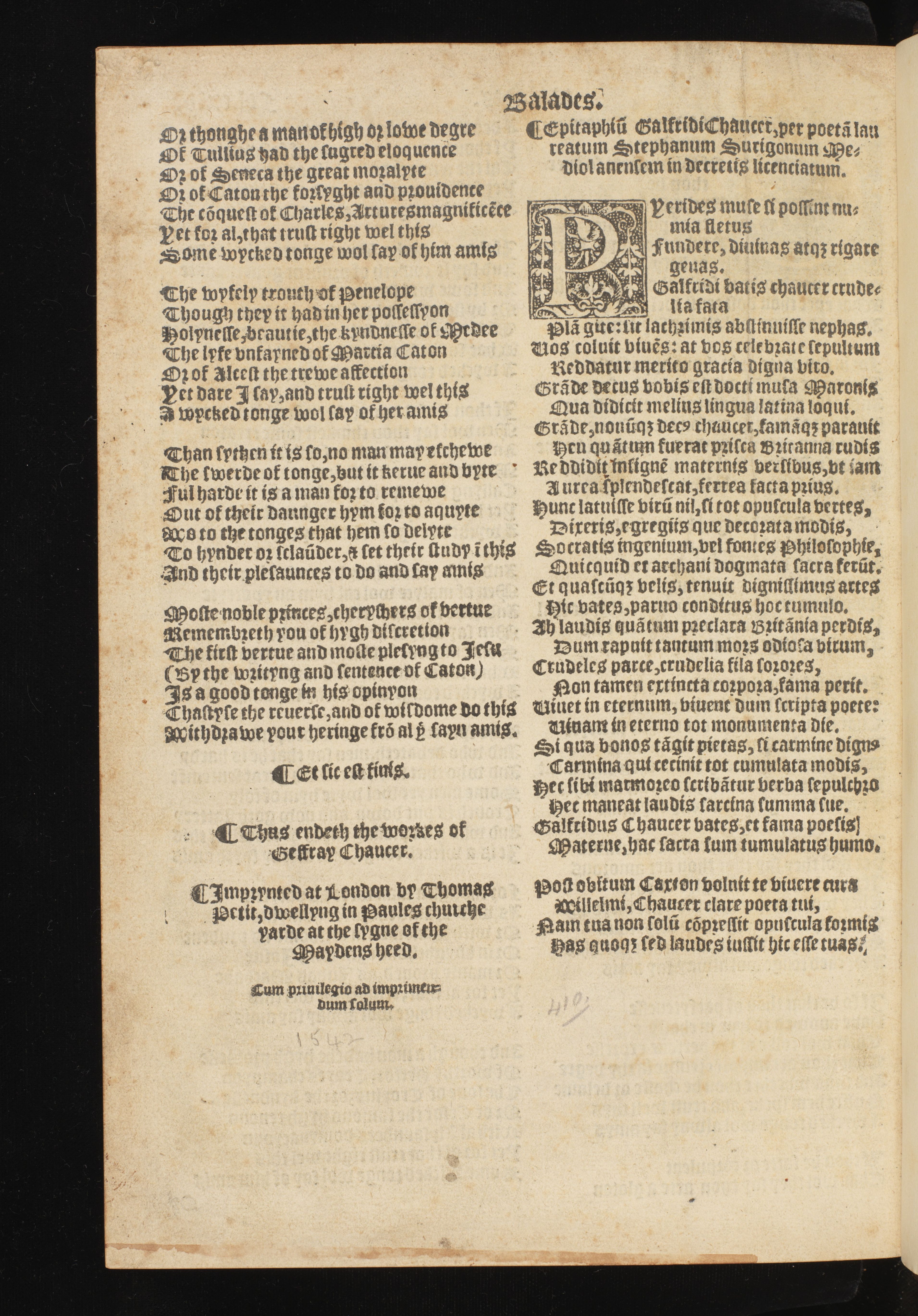 The Workes of Geffray Chaucer newly printed with dyuers workes whiche were neuer in print before: As in the table more playnly dothe appere.