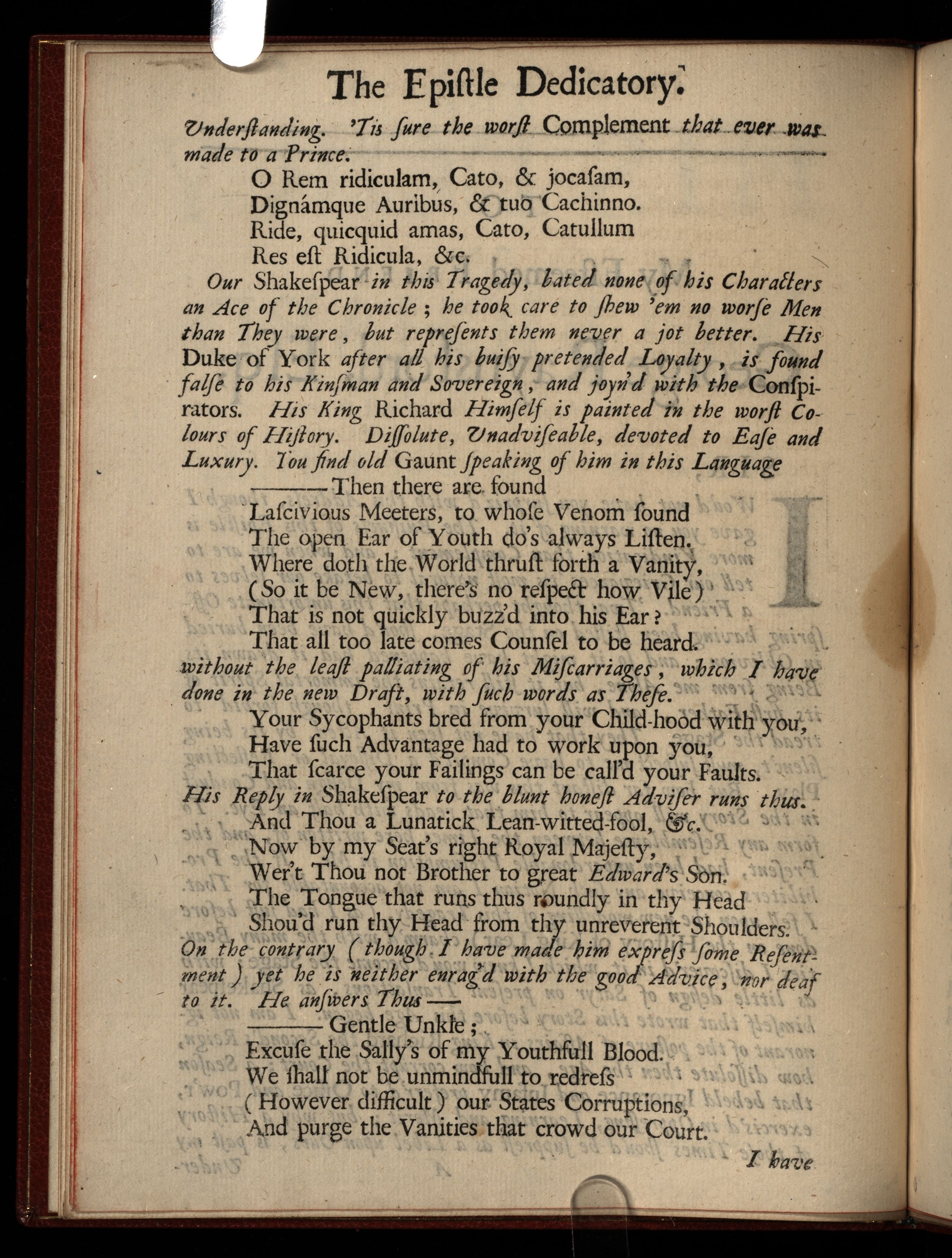 The History of King Richard the Second. Acted at the Theatre Royal, Under the Name of the Sicilian Usurper. With a Prefatory Epistle in Vindication of the Author. Occasion’d by the Prohibition of this Play on the Stage.