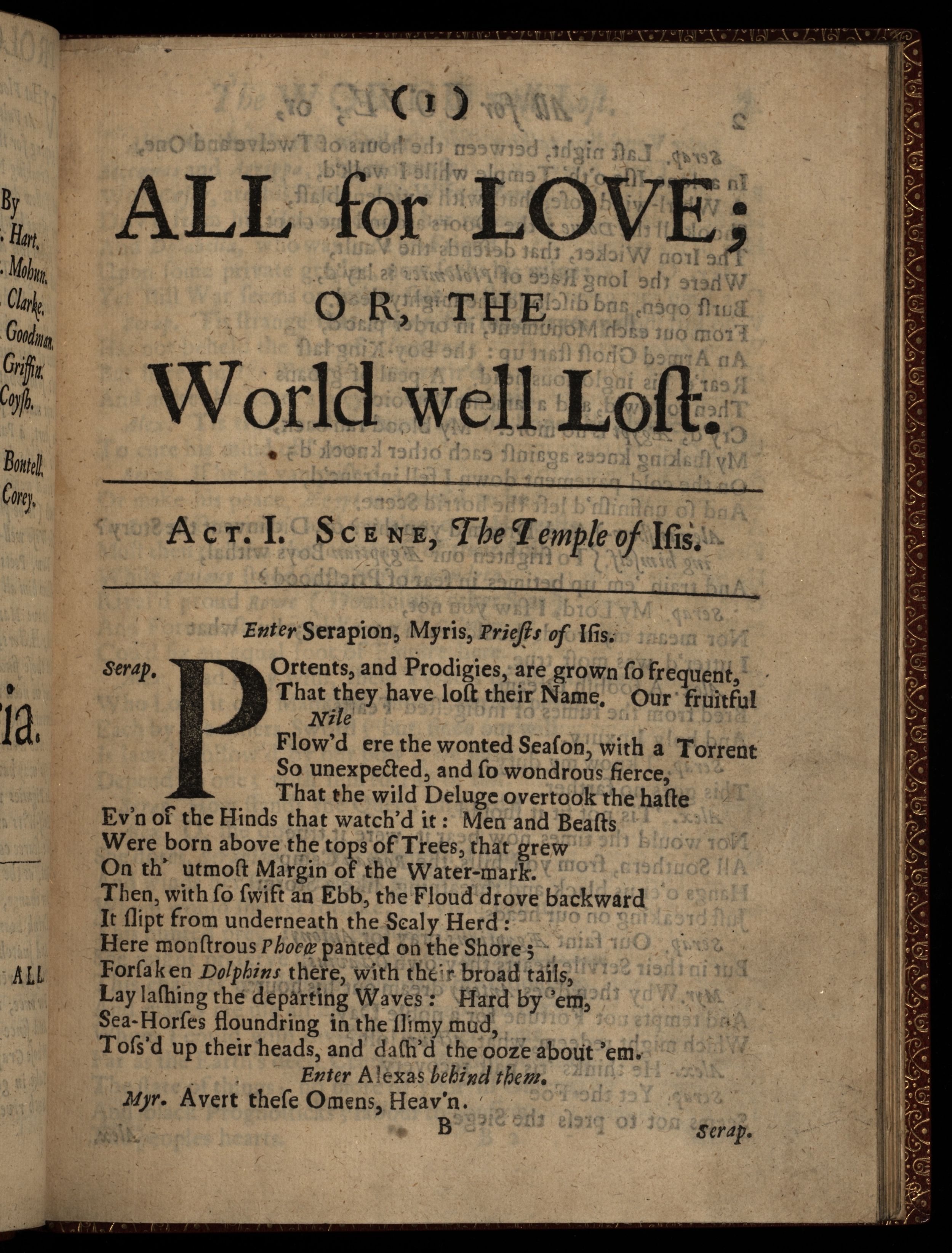 All for Love: Or, The World well Lost. A Tragedy, As it is Acted at the Theatre-Royal; And Written in Imitation of Shakespeare’s Stile.