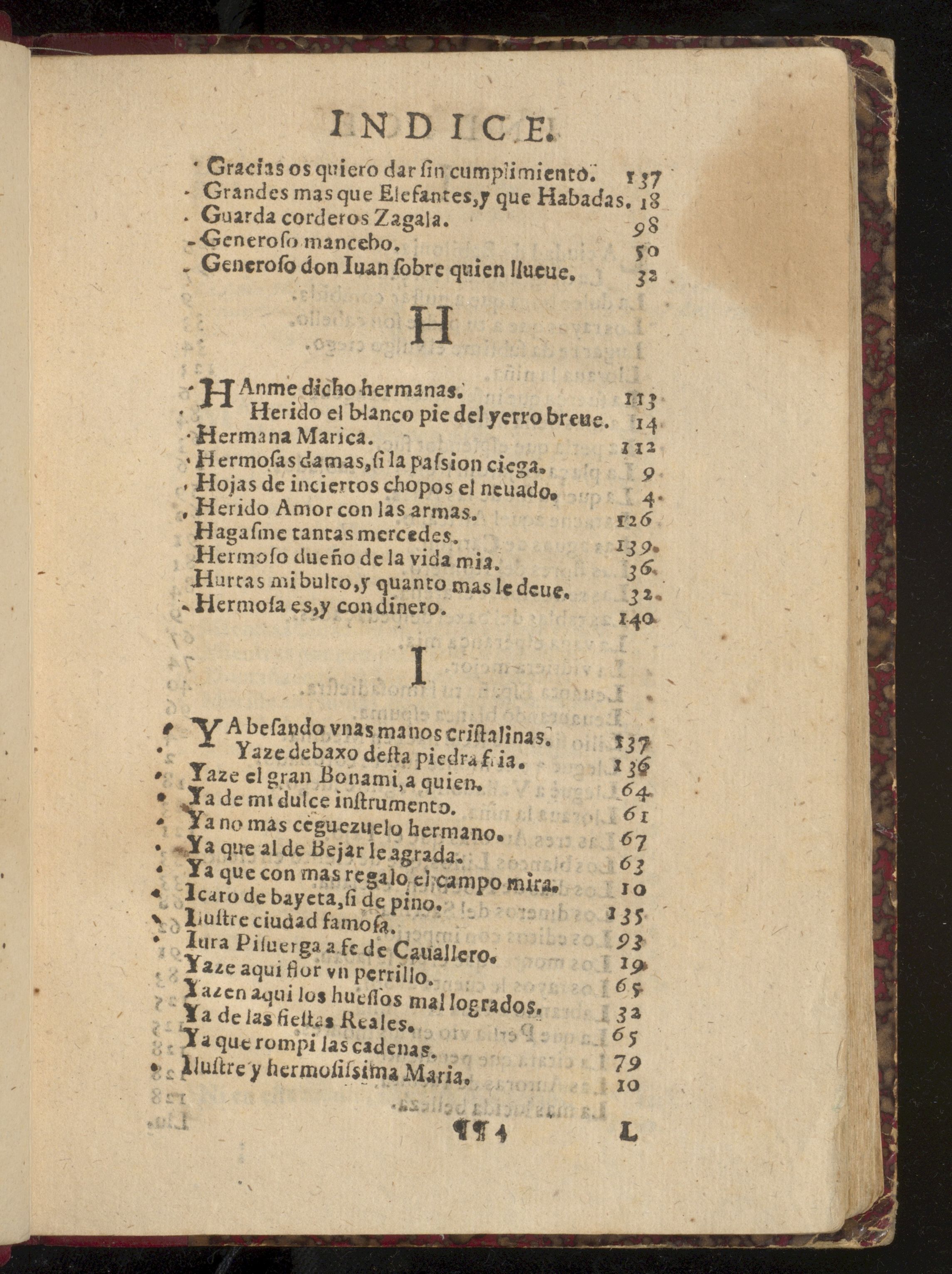 12) Índice de las poesías que en este libro se contiene. Liste alphabétique avec ajouts manuscrits (sans numérotation)