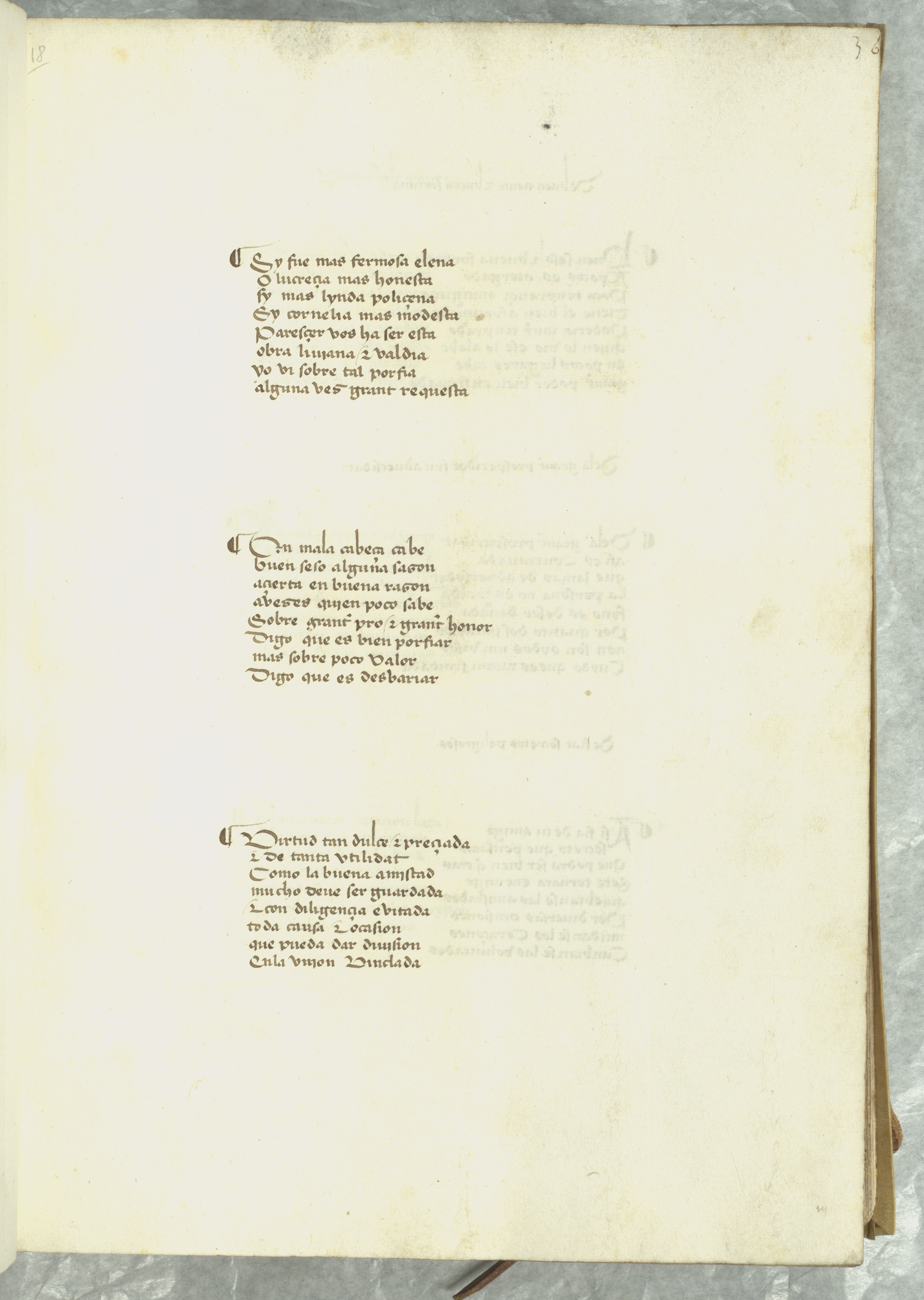 Cancionero, "Diuersas virtudes & vicios & ymnos Rimados a loores || diuinos dirigidos & enbiados al muy beno e discreto || aluar garcia de santa maris del conse[jo] del rey nro señor". Sammlung spanischer Romanzen.