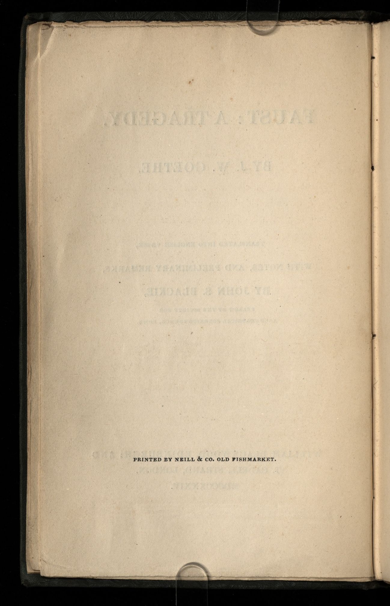 Faust: a tragedy. By J.W. Goethe. Translated into English verse, with notes, and preliminary remarks, by John S. Blackie, fellow of the society for archaeological correspondence, Rome.